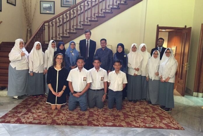 Siswa Sekolah Insan Cendekia Madani, saat dijamu Duta Besar Amerika untuk Indonesia Mr.Robert O Blake di kediaman Dubes Amerika di Jakarta