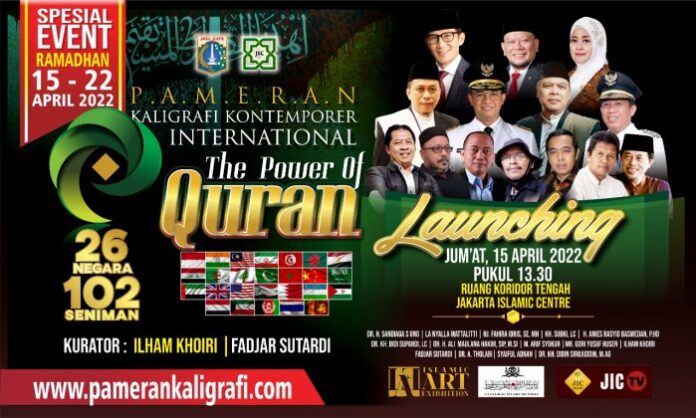 JIC- Menyambut Nuzulul Quran, Pusat Pengkajian dan Pengembangan Islam Jakarta (PPPIJ) akan mengelar Pameran Kaligrafi Kontemporer Internasional The Power Of Quran yang akan berlangsung mulai Jumat 15-04-2022 di koridor gedung Jakarta Islamic Centre.