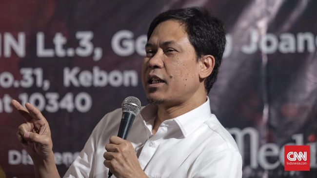 Mantan Sekretaris FPI Munarman didakwa melakukan baiat kepada ISIS pada tiga lokasi berbeda. (CNN Indonesia/Hesti Rika)