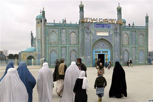 Tak hanya di Turki, Afghanistan juga memiliki masjid yang terkenal dengan sebutan Masjid Biru. Masjid yang berlokasi di Mazar I Sharif, Afghanistan, ini dibangun pada masa Sultan Ahmad Sanjar, penguasa Dinasti Seljuk. Masjid pernah rusak parah ketika agresi Genghis Khan ke wilayah ini pada sekitar 1220 M.Â