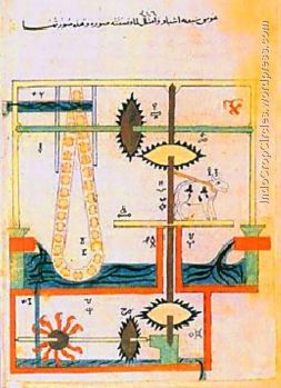 Mesin pompa al-Jazari juga merupakan penemuan yang sangat bermanfaat pada zaman sekarang ini. Al-Jazari menemukan lima jenis mesin untuk memompa air, di antaranya, watermill dan water whell./