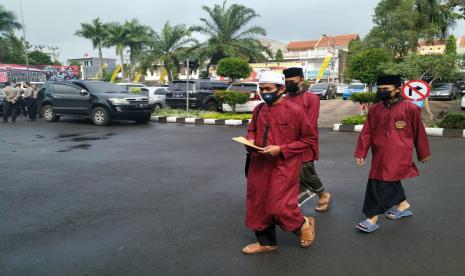 Polisi memeriksa dua orang santri terkait kasus dugaan tindak pidana ujaran kebencian yang dilakukan Denny Siregar, di Polresta Tasikmalaya, Selasa (14/7).     Foto: Republika/Bayu Adji P.