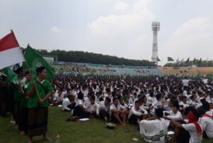 “Estimasi massa dari 264 Ponpes masing-masing 50 saja sudah 13.200. Belum ditambah dari ormas, SKPD, warga masyarakat berbaur, Muslimat NU, IPNU NU. Bisa jadi 60 ribuan yang ikut,” katanya pada wartawan ketika mengiringi peserta PHS.
