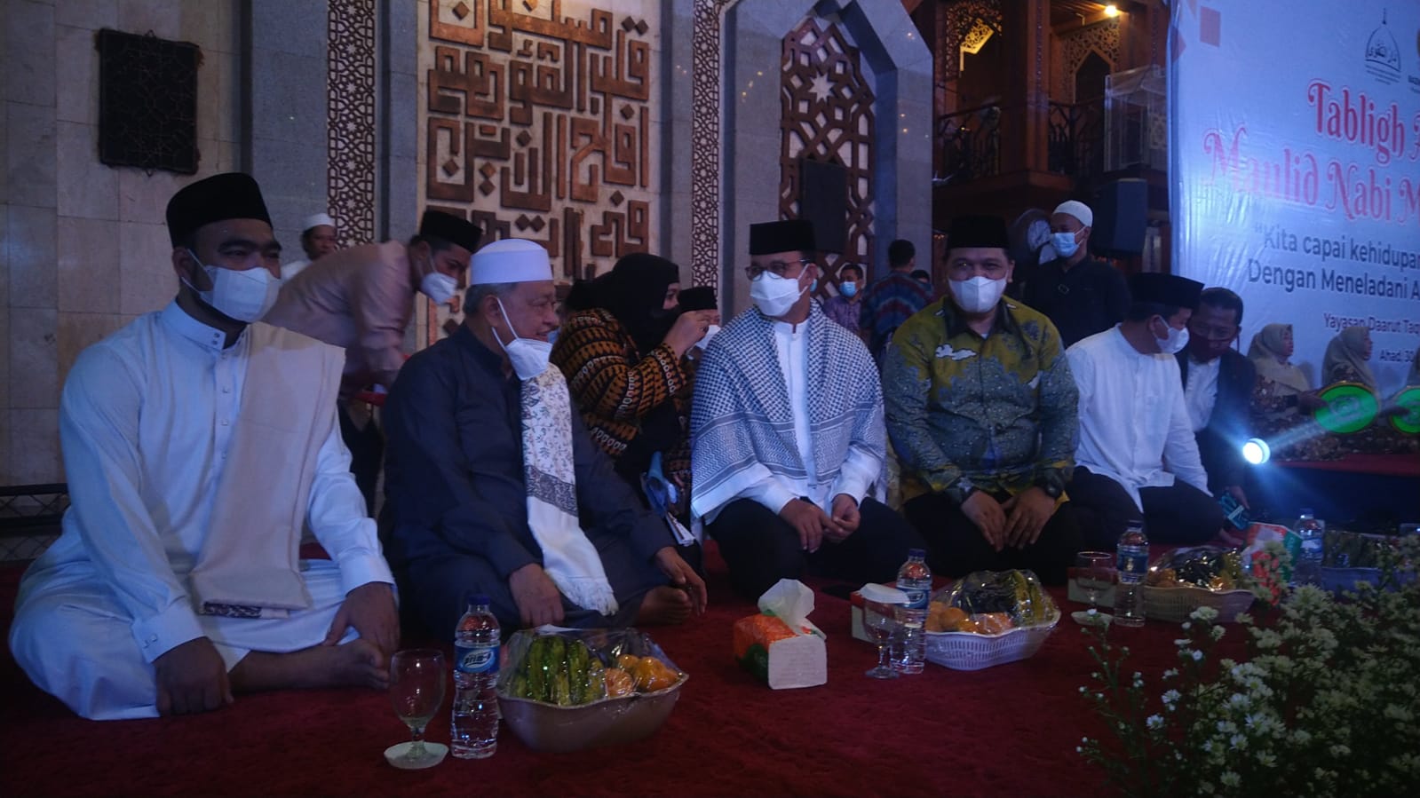 Gubernur DKI Jakarta, Anies Baswedan Didampingi oleh Alim Ulama dan Habaib dalam Tabligh Akbar Maulid Nabi Muhammad SAW di Masjid JIC