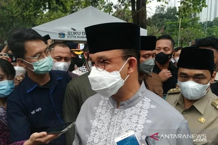 Gubernur DKI Jakarta Anies Baswedan dan Wakil Gubernur DKI Jakarta Ahmad Riza Patria mengantar jenazah Politisi Partai Persatuan Pembangunan (PPP) DKI Jakarta Abraham Lunggana alias Haji Lulung di TPU Karet Bivak, Selasa (14/12/2021) sore. (ANTARA/Mentari Dwi Gayati)