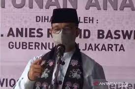 Gubernur DKI Jakarta Anies Baswedan menyampaikan keterangannya di Masjid Al-Wiqoyah Jagakarsa, Jakarta Selatan, Minggu (12/9/2021). ANTARA/HO-Pokja Jakarta Selatan.