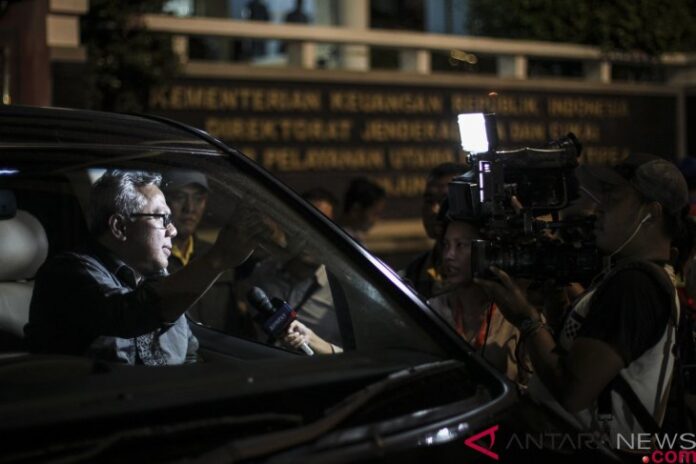 Ketua KPU Arief Budiman menjawab pertanyaan awak media seusai melakukan pengecekan terkait informasi tujuh kontainer surat suara yang sudah tercoblos di kantor Direktorat Jenderal Bea dan Cukai, Pelabuhan Tanjung Priok, Jakarta, Kamis (3/1/2019).