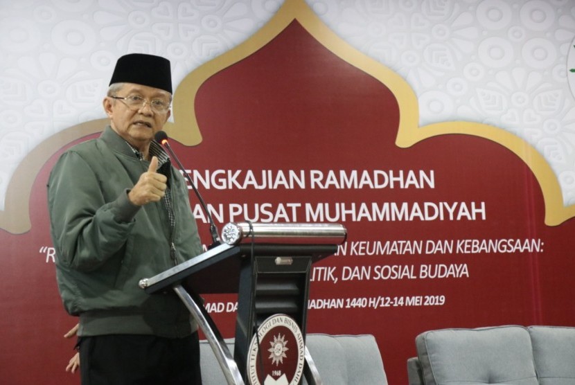Ketua PP Muhammadiyah, Buya Anwar Abbas menutup Pengkajian Ramadhan PP Muhammadiyah di kampus ITB-AD pada Selasa (14/5).      Foto: Republika/Fuji Eka Permana