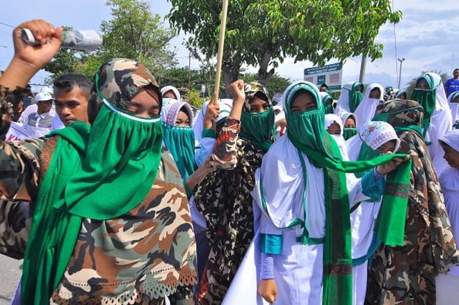Unjuk rasa perempuan dari FPI Aceh untuk menyuarakan protes mereka atas kasus penistaan agama Gubernur DKI Jakarta Basuki Tjahaja Purnama tahun 2014.