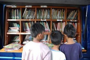 Tampak Anak-anak Sedang Mengunjungi Mobil Perpustakaan Keliling