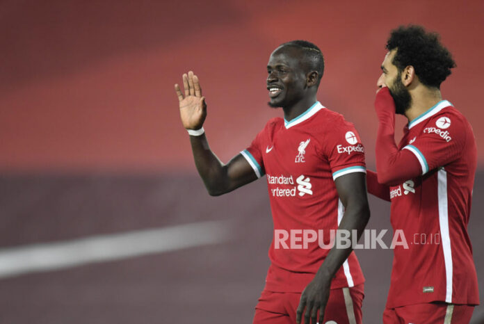 Dua striker Muslim Liverpool Sadio Mane (kiri) dan Mohamed Salah (kanan) saat merayakan gol.    Foto: EPA POOL/Peter Powell / POOL