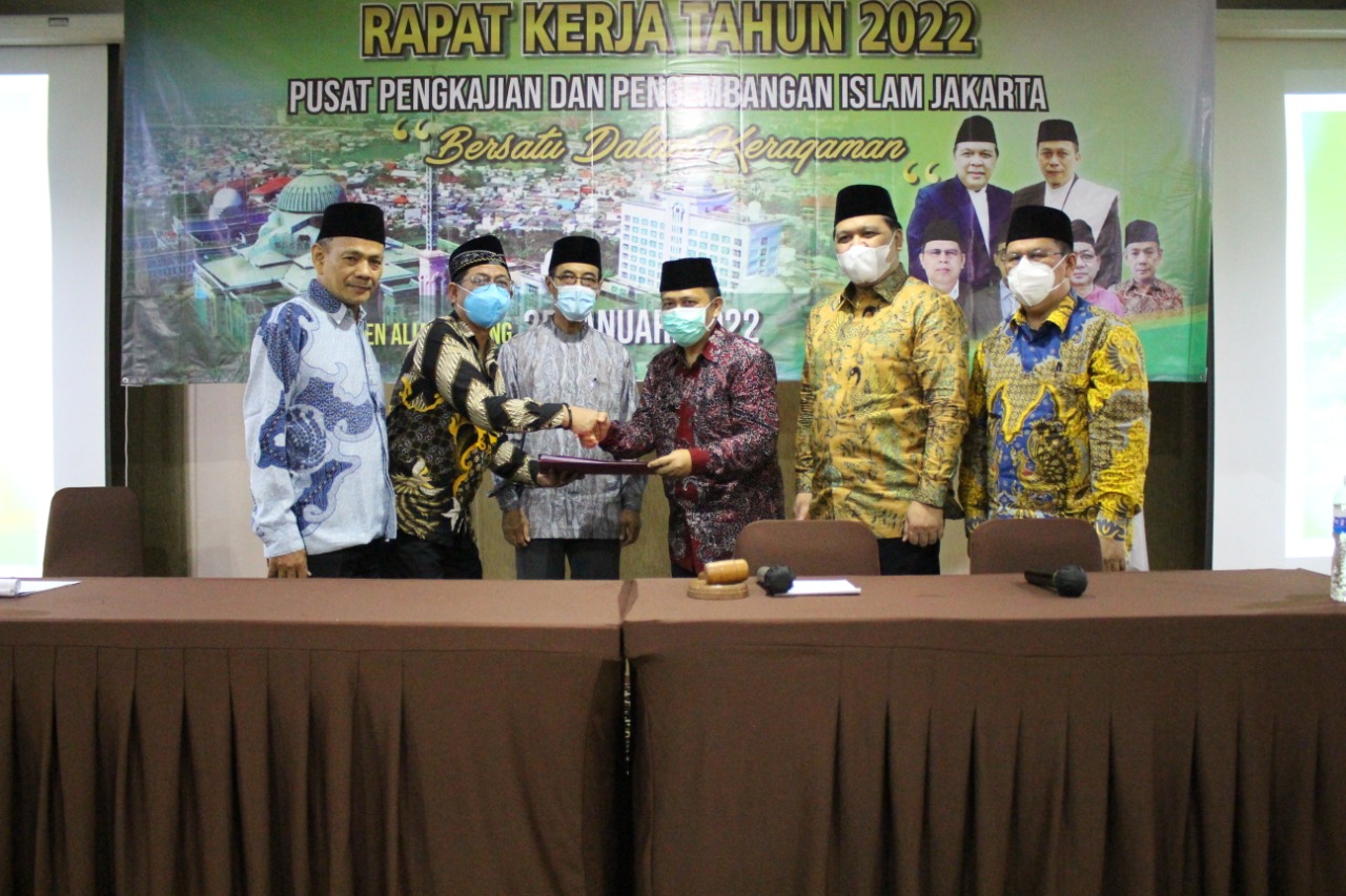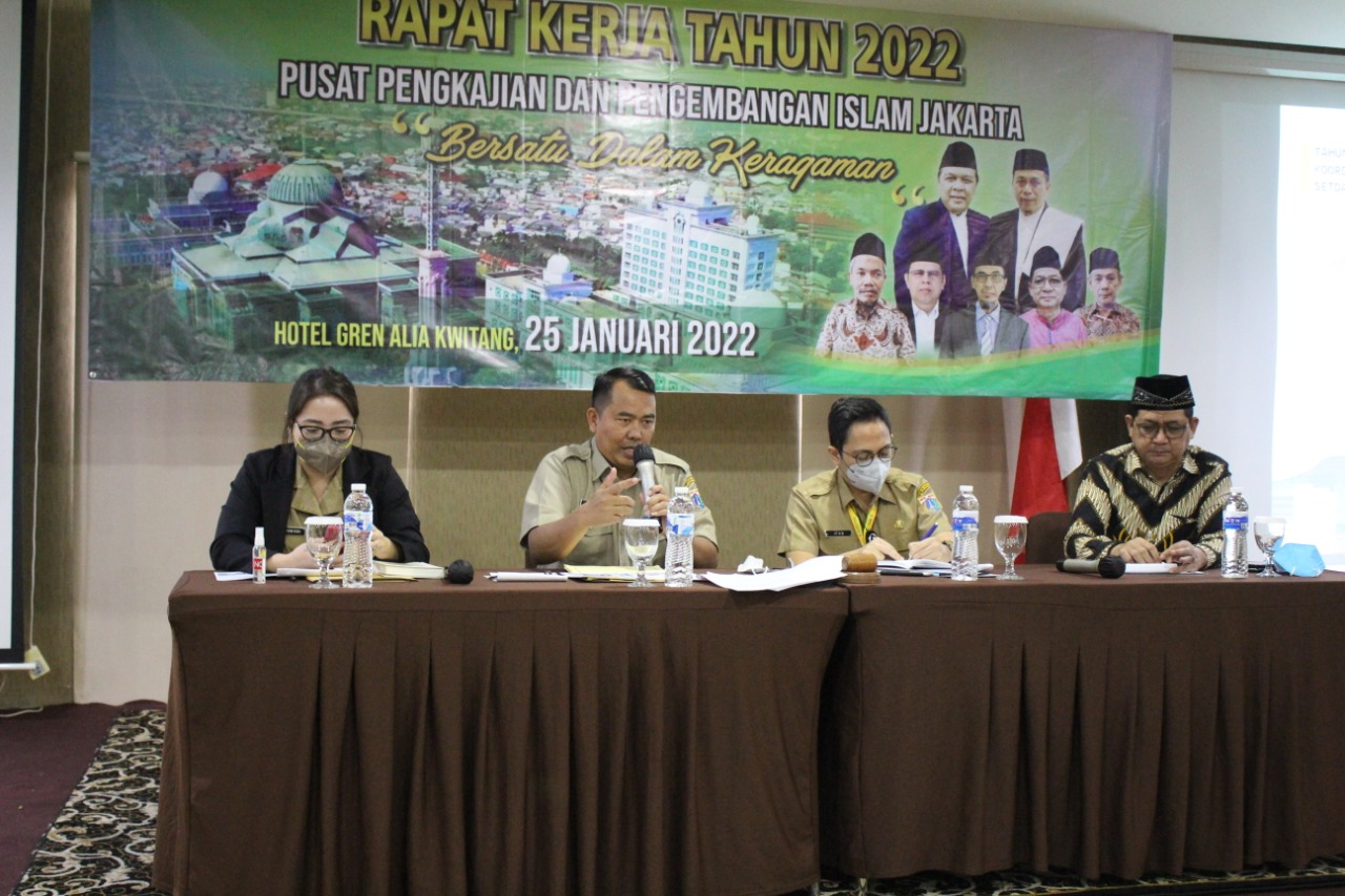 JIC– Dengan mengusung tagline “Bersatu Membangun Dunia” Pusat Pengkajian Pengembangan Islam Jakarta (Islamic Center Jakarta) menggelar rapat kerja yang berlangsung di Hotel Gren Alia Jakarta, Selasa (25/1/2022).