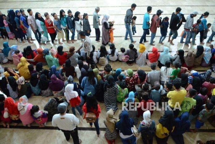 (Ilustrasi) Masyarakat penerima daging kurban antre saat pembagian daging kurban Idul Adha 1439 H, di Masjid Raya Jawa Barat, Alun-alun Kota Bandung, Rabu (22/8).   Foto: Republika/Edi Yusuf