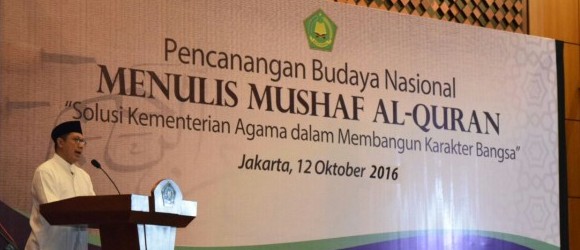“Upaya ini untuk membudayakan Alquran di lingkungan santri dan juga di seluruh masyarakat Indonesia,” kata Menteri Agama Lukman Hakim Saifuddin pada acara Pencanangan Budaya Nasional Menulis Mushaf Al Quran di Jakarta, Rabu (12/10).