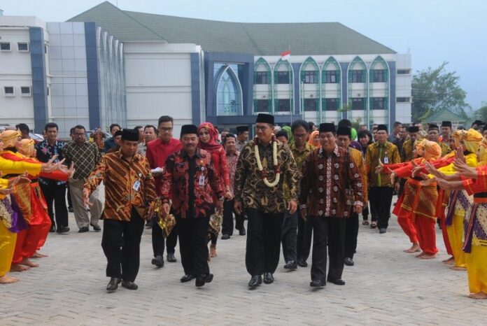 Menteri Agama Lukman Hakim Saifuddin (tengah) menghadiri peresmian kampus baru Institut Agama Islam Negeri (IAIN) Salatiga, Jawa Tengah, Jumat (27/1).
