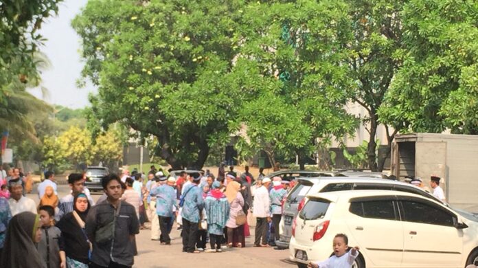 JIC – Calon jamaah haji kloter 23 Jakarta Utara berangkat dari Masjid Jakarta Islamic Centre menuju Pondok Haji Jakarta Timur, Kamis (26/7) Siang.