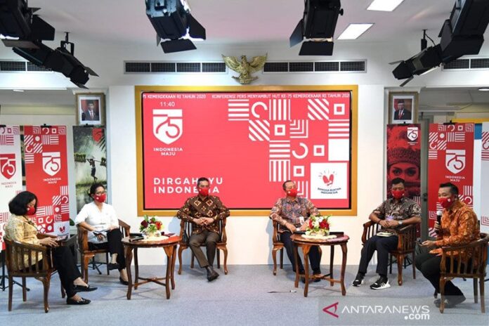 Konferensi pers “Menyambut HUT ke-75 Kemerdekaan RI Tahun 2020” di kantor Presiden Jakarta, Kamis (6/8/2020). ANTARA/HO-Biro Pers Setpres/Lukas/am.