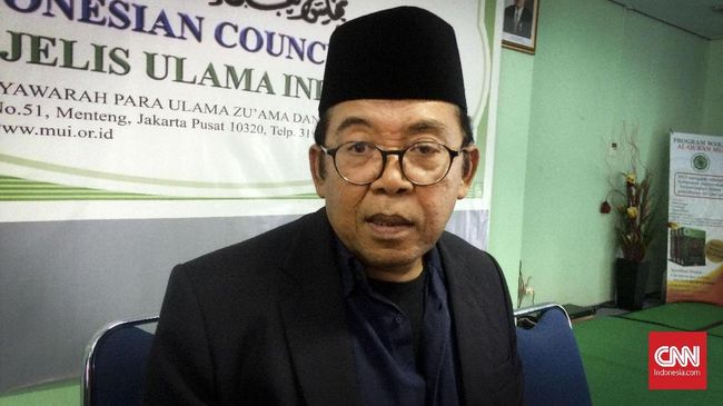 Ketua Majelis Ulama Indonesia (MUI) Masduki Baidlowi meminta umat Islam tidak beribadah di masjid yang berada di wilayah zona merah Covid-19. (CNN Indonesia/Ramadhan Rizki Saputra)