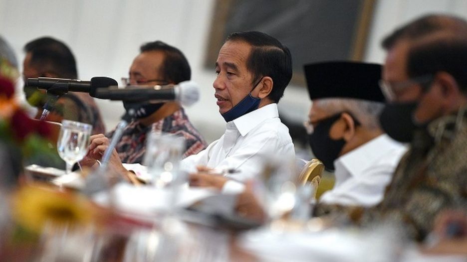 Image captionPresiden Joko Widodo memimpin rapat paripurna kabinet, Juni 2020.