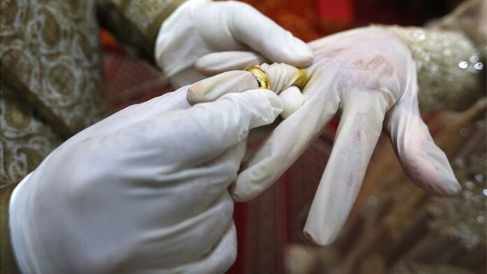 Image captionDari serangkaian tes terhadap orang-orang yang terlibat dalam akad pernikahan, hasilnya ditemukan 10 orang positif Covid-19. (foto ilustrasi)