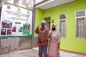 Muhammad Ujang (63) warga Jalan Warakas V Gang I, Kecamatan Tanjung Priok, Jakarta Utara, berfoto bersama istrinya di depan rumahnya yang selesai dibedah lewat program bedah rumah Baznas (Bazis) DKI Jakarta, Minggu (17/1/2021). ANTARA/HO-Kominfotik Jakarta Utara/am.