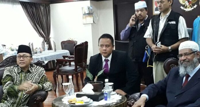 JIC, JAKARTA — Cendekiawan Muslim asal India Zakir Abdul Karim Naik berdialog dengan Ketua MPR RI Zulkifli Hasan serta para awak media di gedung DPR/MPR RI, Jumat (31/3). Dialog itu membahas berbagai hal dari mulai Islam sebagai agama toleran, jihad serta pemahaman tentang masalah kepemimpinan di dalam surah al-Maidah 51.