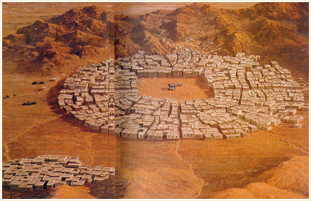 Maka sejak itulah terbentuk perkampungan Mekkah dan Ketika Nabi Ibrahim menengok Nabi Ismail yang sudah berumah tangga, baru dibangun batas-batas yang menandai bangunan pertama yang sangat sederhana yang di kemudian dari dinamakan dengan Masjidil Haram. Batas itu berupa garis yang tidak boleh dibangun rumah, yaitu ditarik garis diameter dari Kakbah ke sumur zam-zam. Di belakang sumur tersebut ditarik melingkar sebagai area tawaf yang dipatuhi hingga zaman Nabi Muhammad SAW.