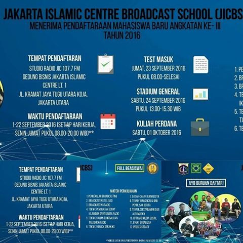 JIC – Dunia broadcasting menjadi salah satu incaran menarik dalam beberapa waktu terakhir. Apalagi di era serba canggih seperti saat ini. Jakarta Islamic Centre (JIC) yang memiliki visi menjadi pusat peradaban Islam telah membuka pendaftaran dan melakukan tes seleksi bagi para peserta JICBS (Jakarta Islamic Centre Broadcast School) angkatan ke-3, gelombang pertama dan kedua pada Jumat (23-09) dan Minggu (25-09) pekan lalu.