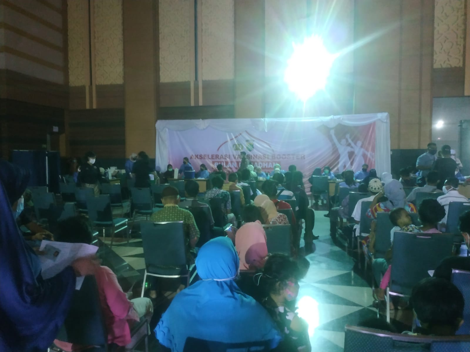 JIC- Direktorat Reserse Kriminal Umum (Ditreskrimum) Polda Metro Jaya menggelar vaksinasi booster untuk masyarakat Jakarta di Jakarta Islamic Centre, Jum’at (8/2/2022).