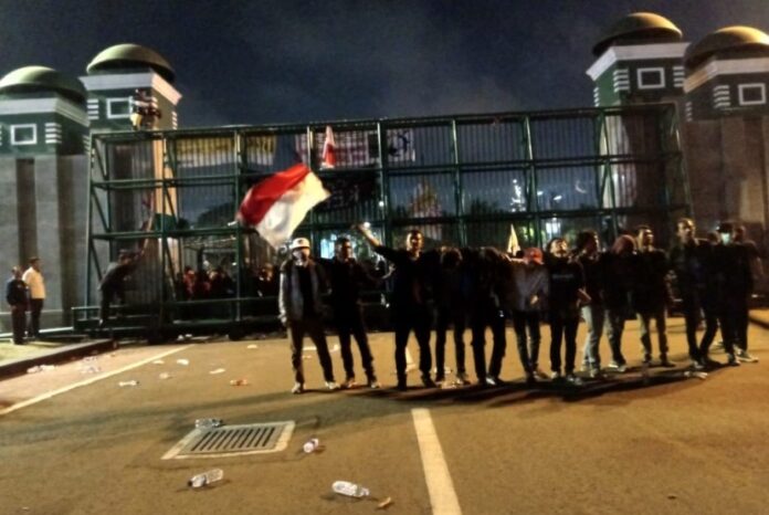 Sejumlah mahasiswa masuk ke halaman Gedung DPR, Senayan, Jakarta, Senin (23/9).                Foto: Republika/Nawir Arsyad Akbar