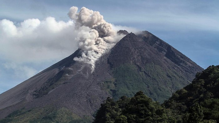 Awan panas guguran Gunung Merapi terlihat dari Kaliurang, Sleman, DI Yogyakarta, Sabtu (9/1/2021). Foto: Antara Foto/Hendra Nurdiyansyah/DetikNews
