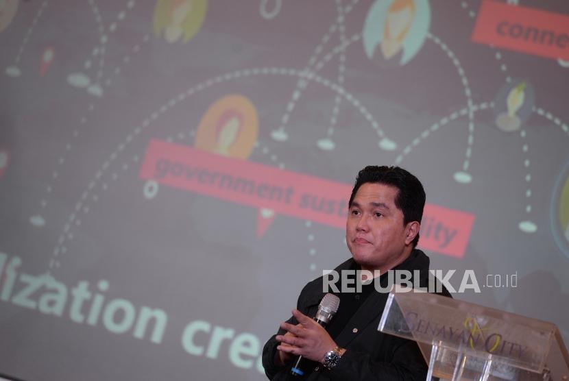 Pembicara Enterpreuneur. Chairman Mahaka Group Erick Thohir menjadi pembicara saat Jakarta Halal Things 2018 di Jakarta, Sabtu (1/12).                            Foto: Republika/ Wihdan