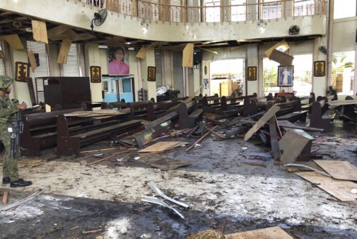Gambar-gambar di dalam gereja di Jolo itu memperlihatkan bangku-bangku kayu hancur dan puing-puing terserak di lantai. Ketika berbicara di Panama, Paus Fransiskus mengutuk apa yang dia katakan “serangan teroris” dan mendoakan bagi para korban tewas dan cedera.