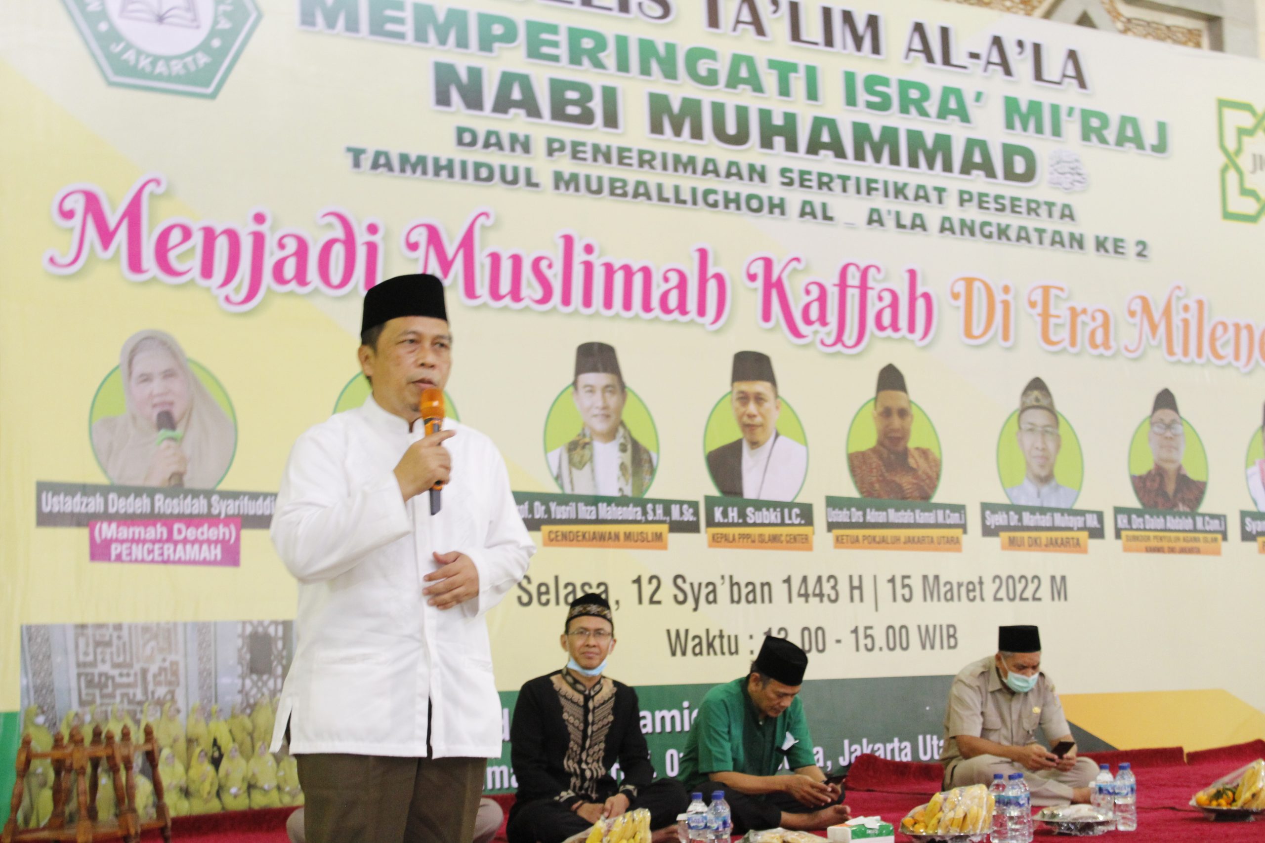 JIC- Majelis Ta’lim Al-A’la, selenggarakan Isra Mi’raj dan pemberian setifikat kepada peserta Tamhidul Muballighah Al-A’la angkatan ke dua di Jakarta Islamic Centre, Selasa (15/3/2022).