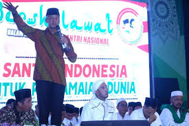 Di hadapan ribuan santri yang tengah mengikuti acara Jateng Bershalawat di Lapangan Gandirejo Sedan, Kabupaten Rembang, Senin (21/10) malam, Ganjar mengatakan selama ini santri dikenal dengan beragam doa-doanya yang terkadang berbau ramalan.