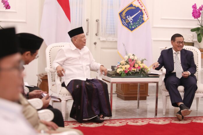 JIC – Gubernur DKI Jakarta, Bapak Pramono Anung, menerima audiensi dari jajaran Pimpinan Pusat Pengkajian dan Pengembangan Islam Jakarta (PPIJ) di Balai Kota DKI Jakarta. Hadir dalam pertemuan tersebut di antaranya KH. Muhyiddin Ishaq (Kepala Pusat PPIJ), Dr. Ir. H. Rasyidi HY, SH., MM., MA., CPA. C. Med (Kadiv Pengkajian & Pendidikan), Ir. Sukri Kardjono (Kadiv Sosbud & Ekonomi Syariah), serta H. Afifuddien, SHI., MM (Kadiv Komunikasi & Penyiaran).