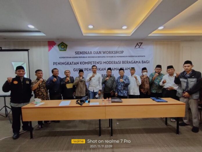 Kegiatan Diseminasi dan Workshop Moderasi Beragama kepada para Guru PAI yang digelar Direktorat PAI Dirjen Pendis Kemenag RI bekerja sama dengan Yayasan AZ Membangun Indonesia Berdaya di Kota Bekasi pada 10-12 November 2021 lalu. | Foto: dokpri