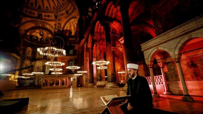 Pembacaan Surat Al-Fath di Hagia Sophia Turki                                   Foto: Anadolu Agency