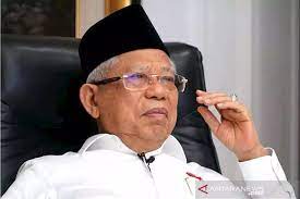 Wakil Presiden (Wapres) K. H. Maruf Amin pada acara Dies Natalis Universitas Nahdlatul Ulama Surabaya (UNUSA) melalui video conference dari kediaman resmi Wapres, Jalan Diponegoro Nomor 2, Jakarta Pusat, Selasa (21/07/2020). ANTARA/Setwapres/pri. (ANTARA/Setwapres)
