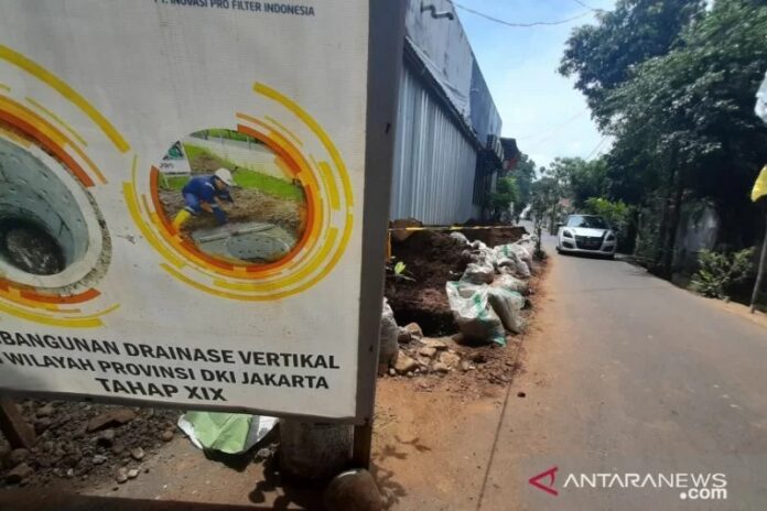 ARSIP – Salah satu lokasi pengerjaan drainase vertikal (sumur resapan) di kawasan Cilandak Barat, Cilandak Jakarta Selatan, Rabu (17/11/2021).