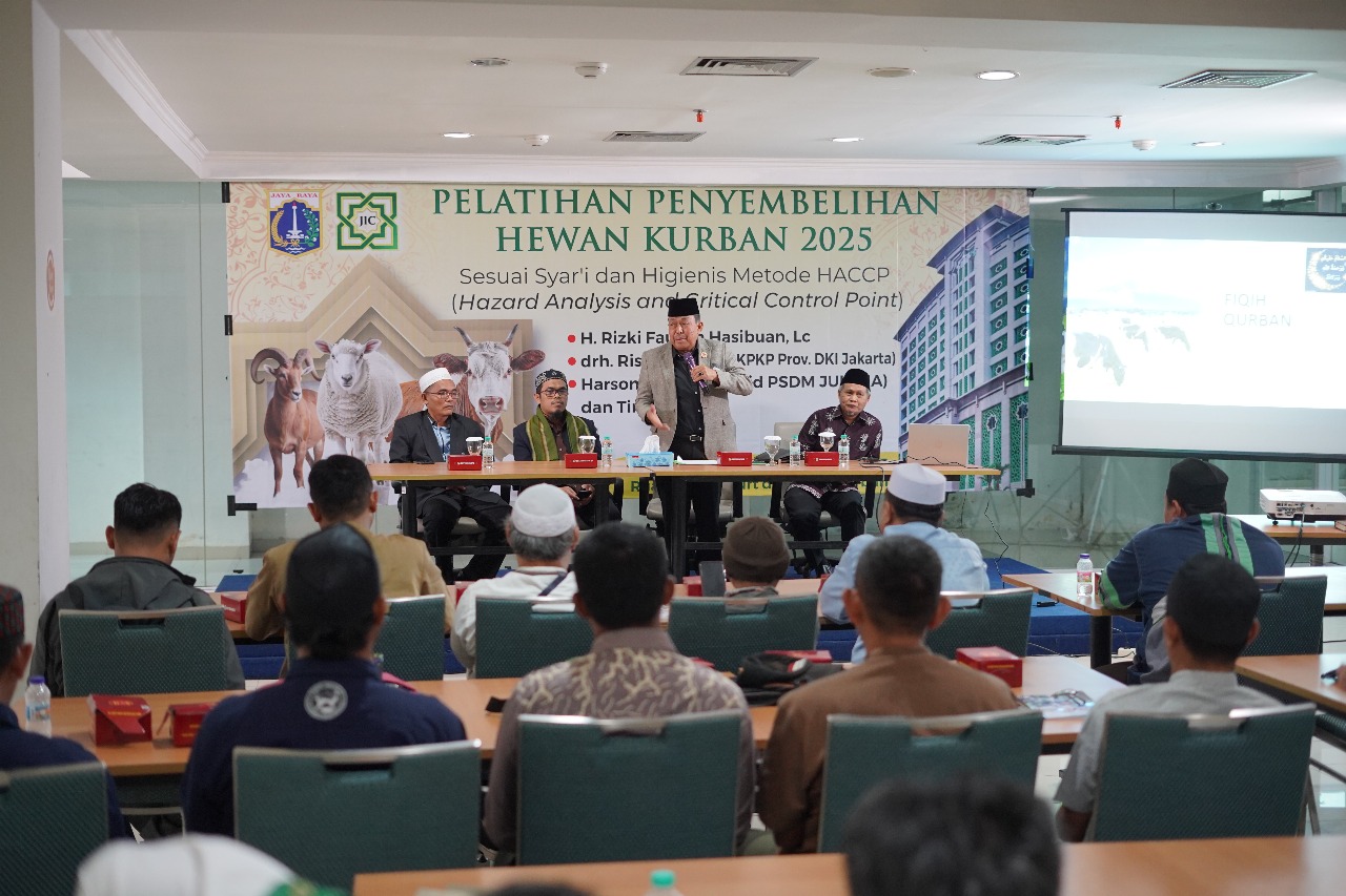Jakarta, (islamic-center.or.id) — Menjelang Hari Raya Idul Adha 1446 H, Pusat Pengkajian dan Pengembangan Islam Jakarta (PPIJ) menyelenggarakan Pelatihan Penyembelihan Hewan Kurban Syar’i dan Higienis metode HACCP. Kegiatan yang digawangi Divisi Pengkajian dan Pendidikan ini dilaksanakan bertujuan untuk meningkatkan pemahaman dan keterampilan masyarakat terkait tata cara penyembelihan hewan kurban yang sesuai dengan syariat Islam dan memenuhi standar higienitas berdasarkan metode HACCP (Hazard Analysis and Critical Control Point).
