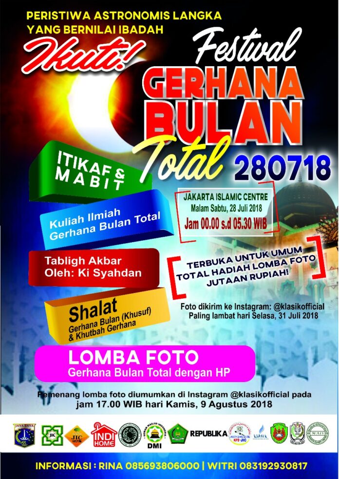 JIC – Kegiatan festival gerhana bulan total dengan peristiwa Astronomis Langka yang bernilai Ibadah, insya Allah akan diselenggarakan pada :