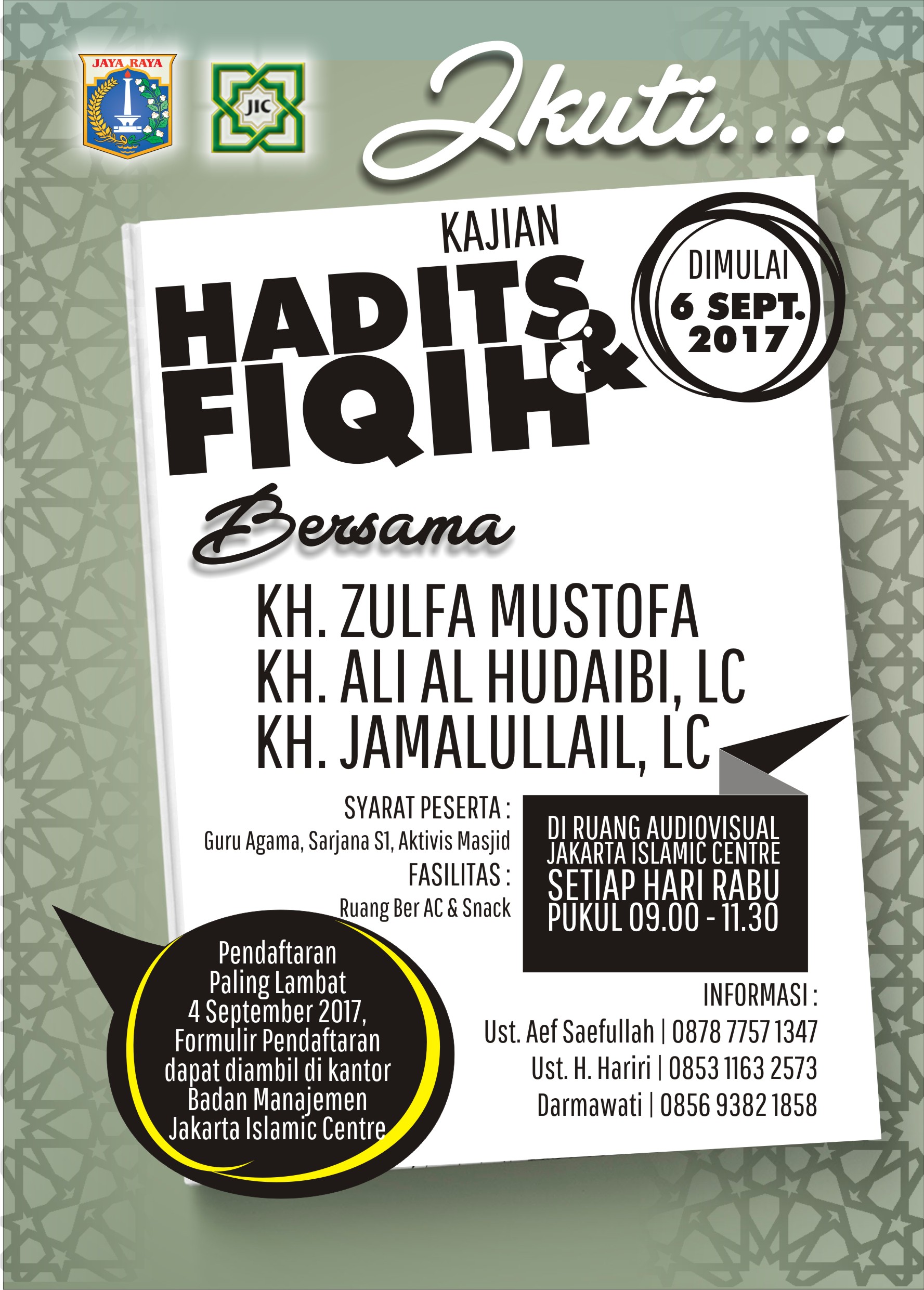 Ikutilah Kajian Hadits & Fiqih di Masjid JIC dengan narasumber Fikih yakni Dr. KH. Fuad Tohari, MA dan Kajian Hadits oleh KH. Jamalulail Said, Lc yang akan dilaksanakan pada :