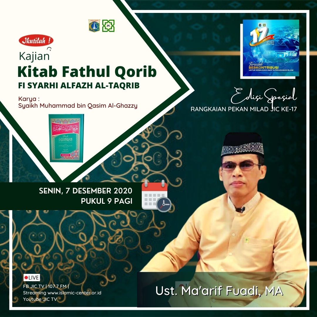 Karya Syaikh Muhammad bin Qasim Al-Ghazzy bersama ustadz Maarif Fuadi, MA yang dilaksanakan pada Senin, 7 Desember 2020 pukul 09.00 WIB.