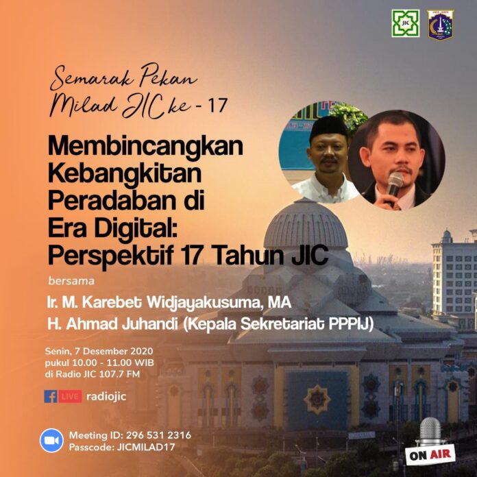 JIC – Dalam rangka memperingati milad JIC yang ke-17, Radio Jakarta Islamic Centre mempersembahkan kegiatan virtual yang disiarkan melalui Facebook LIVE “Radio JIC” dan gelombang 107.7 FM, berikut rangkaian kegiatan tersebut :