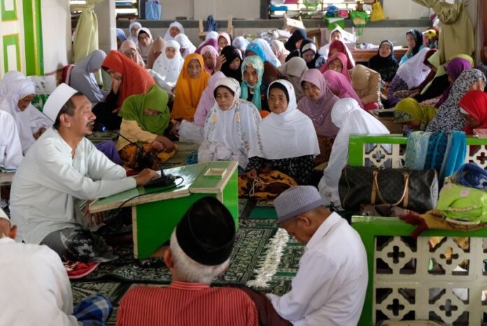 JIC, MAGELANG — Sejumlah santri sepuh mendengarkan ceramah di serambi Masjid Agung Payaman, Komplek Pondok Pesantren Sepuh, Payaman, Magelang, Jateng, Selasa (7/5/2019).