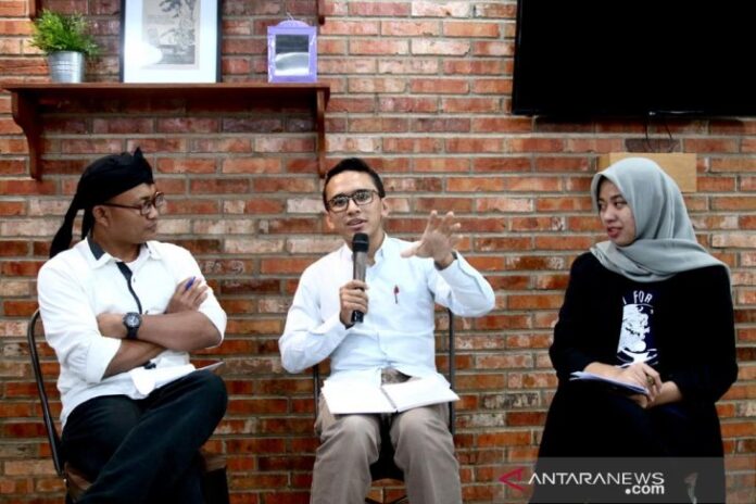 Pakar Asia Selatan dari Fakultas Ilmu Sosial dan Ilmu Politik Universitas Indonesia, Agung Nurwijoyo (tengah), Direktur Utama Sekretariat SEAHUM Amin Sudarsono (kiri) saat berbicara dalam diskusi bertajuk “Kashmir di Persimpangan Jalan” di Jakarta, Rabu (14/8/2019). (ANTARA/Genta Tenri Mawangi)