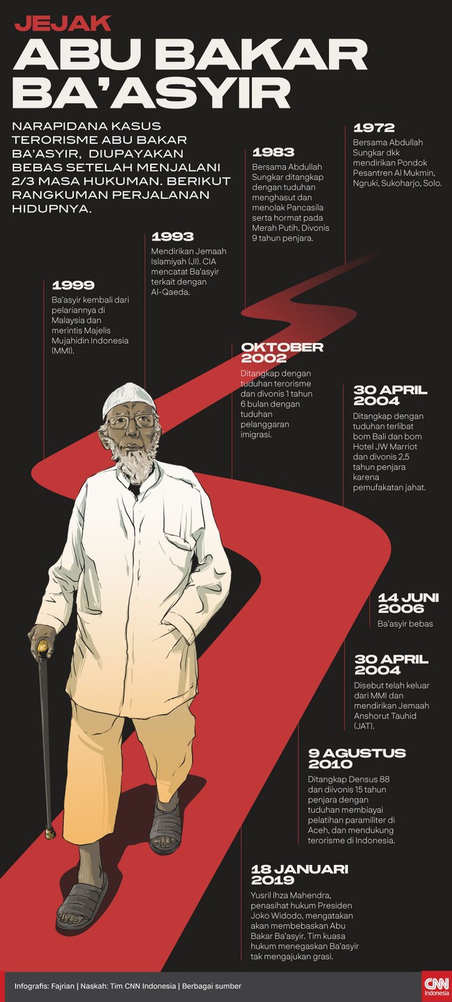 News Update INFOGRAFIS: JEJAK RADIKAL ABU BAKAR BA’ASYIR January 21, 2019 0 292 FacebookXPinterestWhatsApp JIC, JAKARTA– sumber : cnnindonesia.com