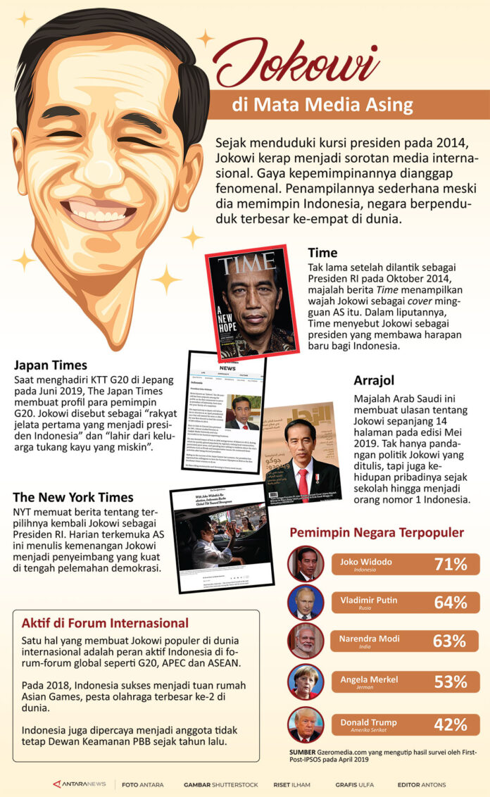JIC, JAKARTA— Sejak menduduki kursi presiden pada 2014, Jokowi kerap menjadi sorotan media internasional. Gaya kepemimpinannya dianggap fenomenal. Penampilannya sederhana meski dia memimpin Indonesia, negara berpenduduk terbesar ke-empat di dunia.