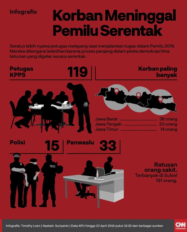 News Update INFOGRAFIS: KORBAN TEWAS PEMILU SERENTAK April 24, 2019 0 294 FacebookXPinterestWhatsApp JIC, JAKARTA– sumber : cnnindonesia.com
